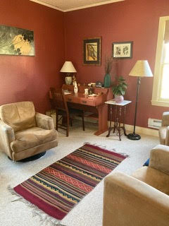 Tranquil office with a private entrance from the parking area and an anteroom that can hold a small desk or serve as a private waiting space.