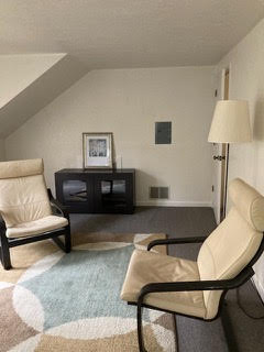 Starting at the ramped entry the ground floor welcomes disabled clients and this spacious office accommodates them well. Ample light from french doors and a pair of windows also make this a comfortable therapeutic space.